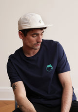 Das 5Panel Cap besteht aus feinem Bio-Köper. Hat einen geraden Schirm und um die Größe zu verstellen, ist hinten ein Riemen aus Metall zu finden.