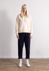 Es ist innen für einen hohen Tragekomfort aufgeraut, besteht aus 340 g/m² feinstem American Fleece (100% zertifizierter Bio-Baumwolle) und ist in Barcelos (Portugal) hergestellt.