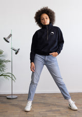 Unser neues Turtleneck Cropped Half Zip Sweatshirt hat eine leicht verkürzte Länge, zwei Innentaschen um die Hände darin zu vergraben, es ist innen für einen hohen Tragekomfort aufgeraut und mit unserem Hafendieb-Claim veredelt.